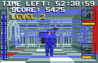 It's awkward to shoot the robots horizontally, there's no space to see them coming at all. So I just waited until they wandered in front of me instead.