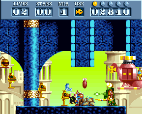 Though the Amiga version doesn't actually have this animated intro showing Putty getting dropped into enemy territory, so just pretend you didn't see it.