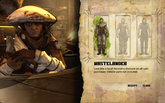First thing I need to do while I'm here is change out of my Ark outfit so that I'm not so conspicuous. It appears a group of antagonists known as the Authority are capturing everyone who pops up from an Ark, so I need to go incognito. Different outfits get me different bonuses and fortunately none of them come with a mushroom hat, though whatever I pick will be permanent. People in the wasteland are only allowed to change clothes once in their lives it seems.