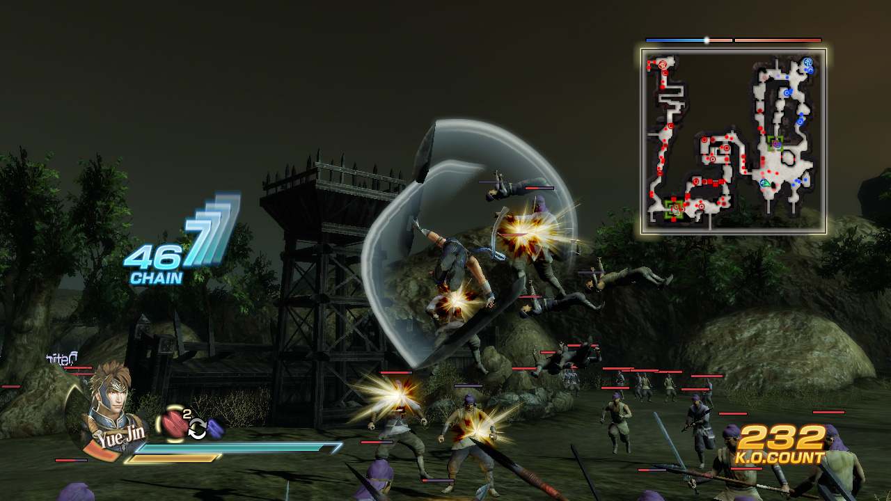The core gameplay is how it has always been: repetitive and satisfying. You wade into a crowd, relying on muscle memory to tap out the correct series of button presses needed to send everyone airborne, and try to keep track of the dude with the name above his head, then he dies and you grab your prize before summoning your horse and riding off to the next crowd. It's not entirely brainless, especially when you turn the difficulty up and the enemy officers start putting up a fight, but separated on its own it'd basically be an 3D evolution of Golden Axe or Streets of Rage. But then the game adds in a few things to keep it interesting:
