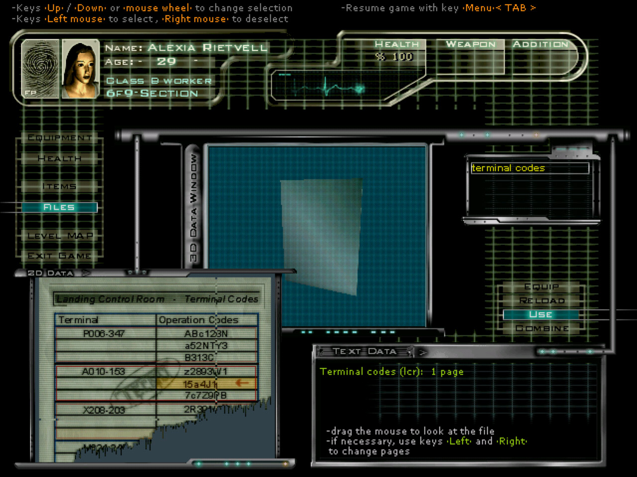 I've found a File telling me all about the hand-held map computer that my inventory menu is saving a slot for but I don't yet possess. There's also a computer that requires a CD, and a Data Box item which looks like a CD but is evidently distinct in some way. There was a projector that required a Data Box near where I found the Electric Gun, so that's something to add to my mental list of things to do.
